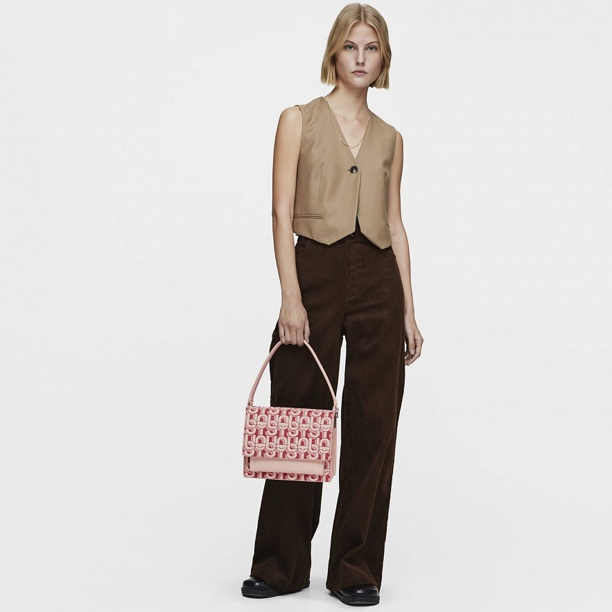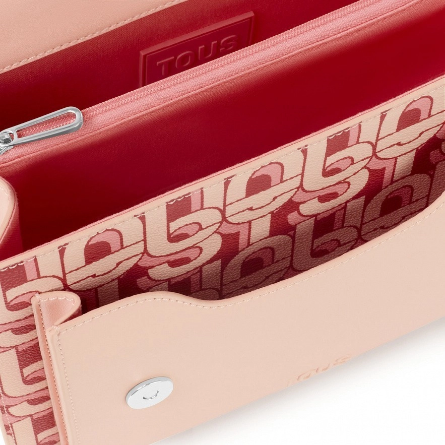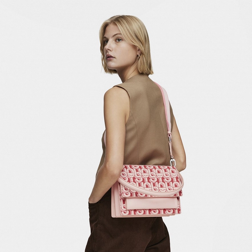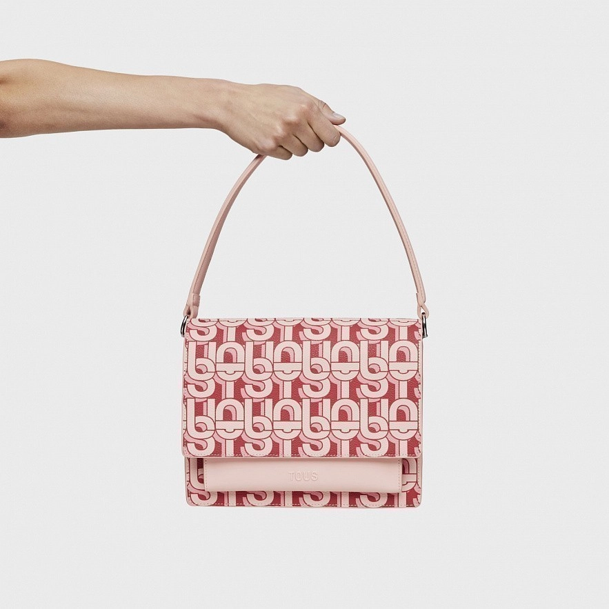 Средняя сумка TOUS MANIFESTO Audree с отделкой из искусственной кожи и принтом кораллового цвета. Две магнитные кнопки. Открытый наружный карман. Внутри два отделения, разделенные карманом на молнии. Фиксированный плечевой ремень и регулируемый и съемный ремень для ношения на груди. Размеры (высота x ширина x глубина): 20 x 25 x 12 см.