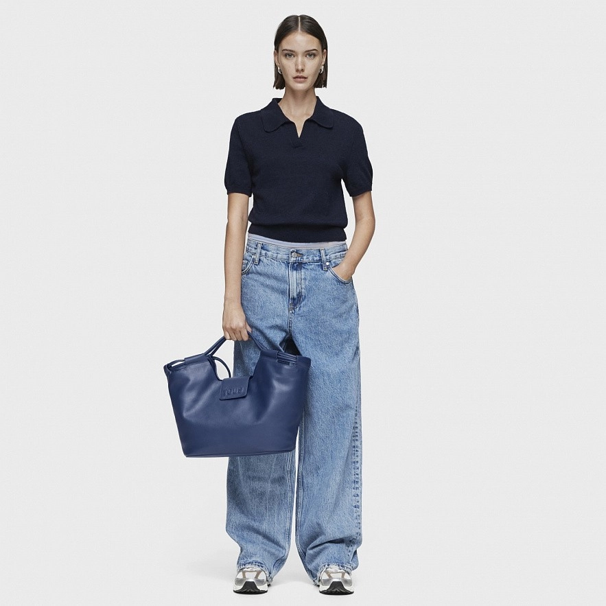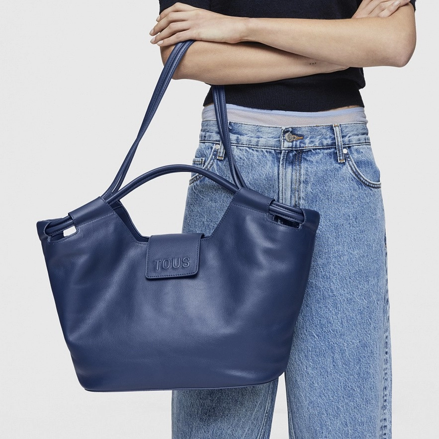 Большая сумка TOUS Sun из темно-синей яловичной кожи с сертификатом LWG . Застежка на магнитную кнопку. Внутренний карман на молнии. Фиксированные ручки и плечевые ремни. Размеры (высота x ширина x глубина): 27 x 52 x 15 см.