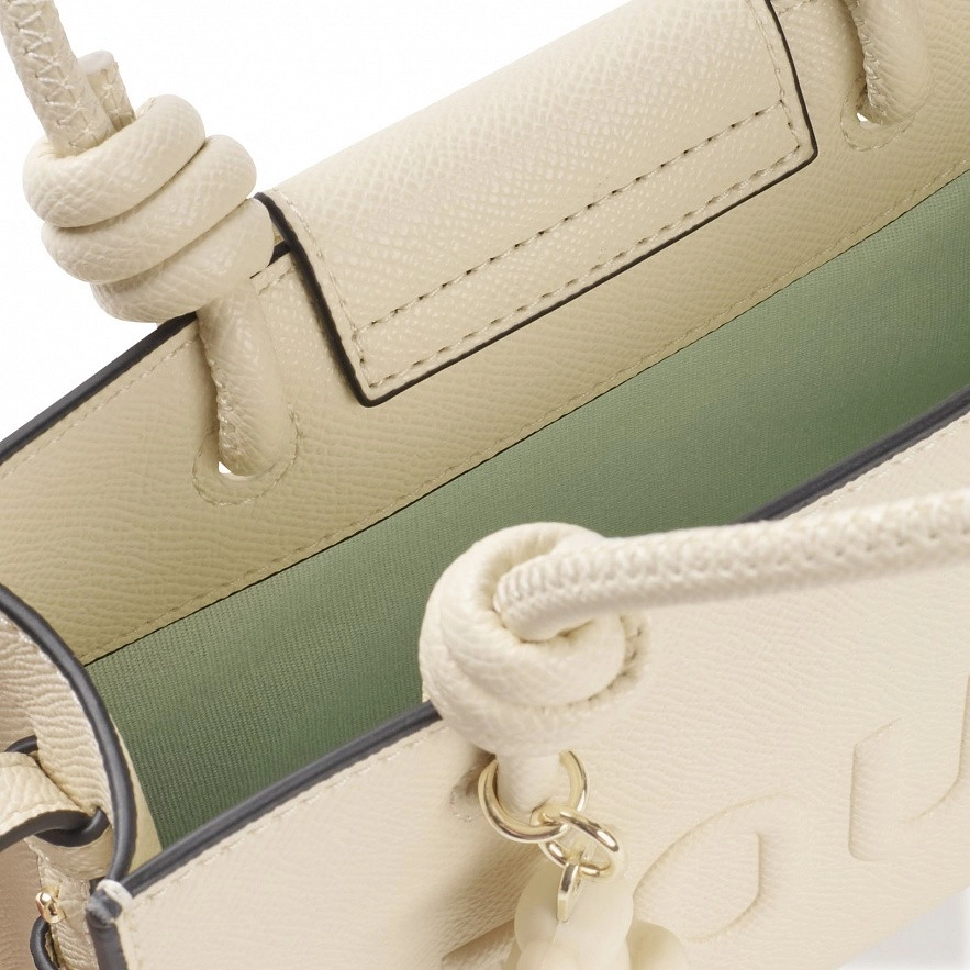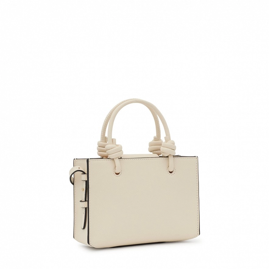 Горизонтальная мини-сумка TOUS La Rue New из бежевой искусственной кожи. Застежка на магнитную кнопку. Фиксированная ручка и регулируемый и съемный ремешок для ношения на груди. Подвеска в виде милого медвежонка. Размеры (высота x ширина x глубина): 9,5 x 19,5 x 2 см.