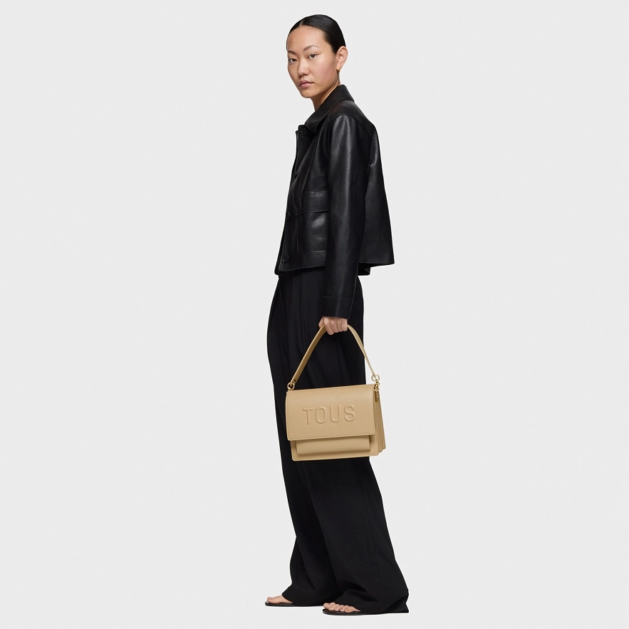 Сумка TOUS Brenda Audree из полиуретана песочного цвета. Имеет клапан и застежку на две магнитные кнопки. Имеет два отделения, разделенные одним на молнии, и открытый карман спереди. Фиксированный плечевой ремень и регулируемый, съемный наплечный ремень. Размеры (высота х ширина х глубина): 19 x 25 x 11,5 см