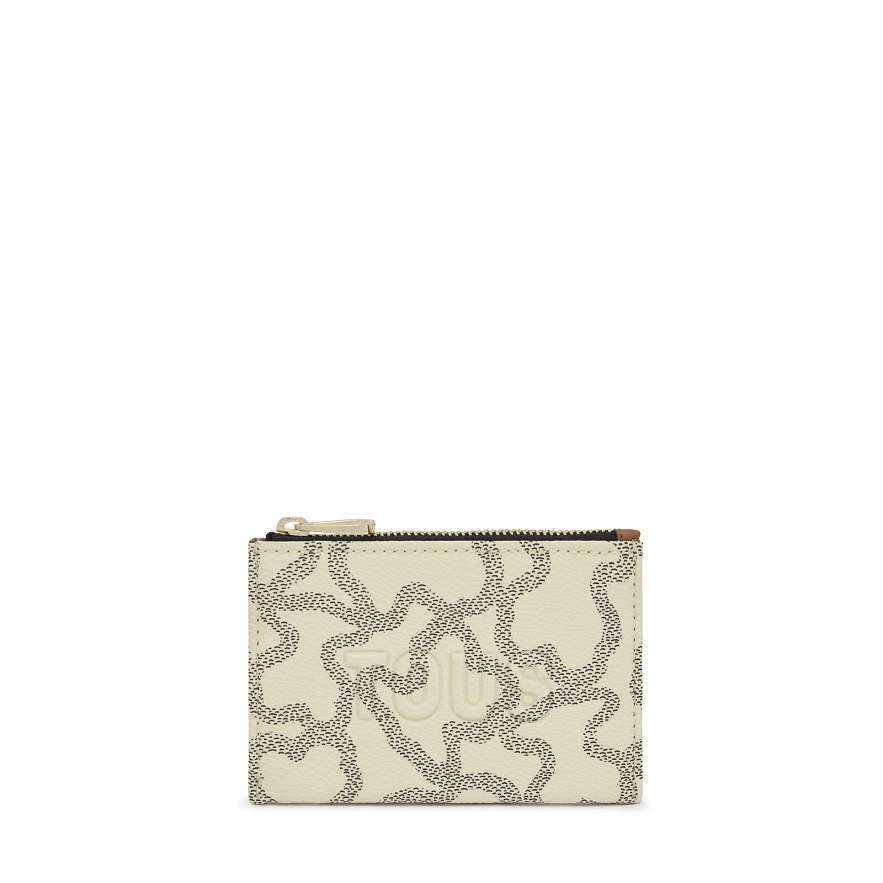Кошелек TOUS Kaos Icon бежевого цвета из синтетического материала и деталями из искусственной кожи. Специальное отделение для монет на молнии. Имеет три слота для карт на тыльной стороне, один из которых прозрачный. Размеры (высота х ширина х глубина): 8 х 12 х 1,5 см.