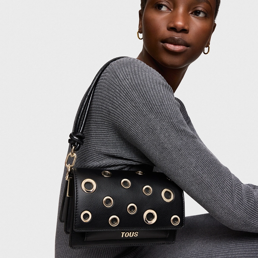 Сумка TOUS Audree из полиуретана черного цвета. Застежка на магнитных кнопках. Открытый карман спереди и два открытых отделения внутри. Съемный плечевой ремень, регулируемый и съемный наплечный ремень. Размеры (высота х ширина х глубина): 12 х 20 х 10,5 см.