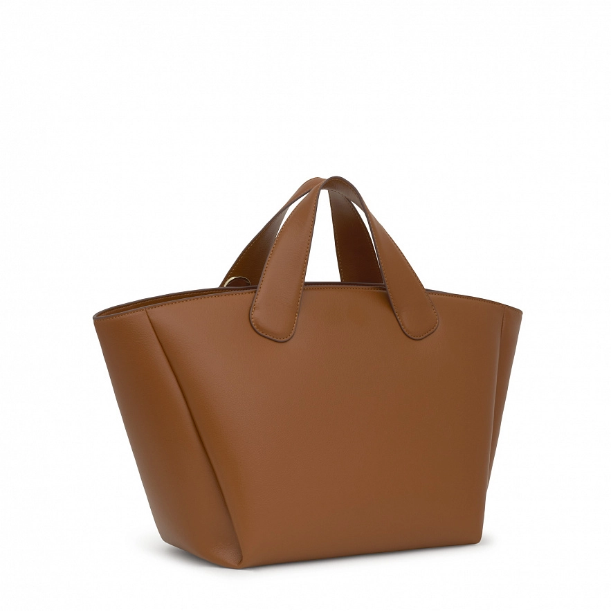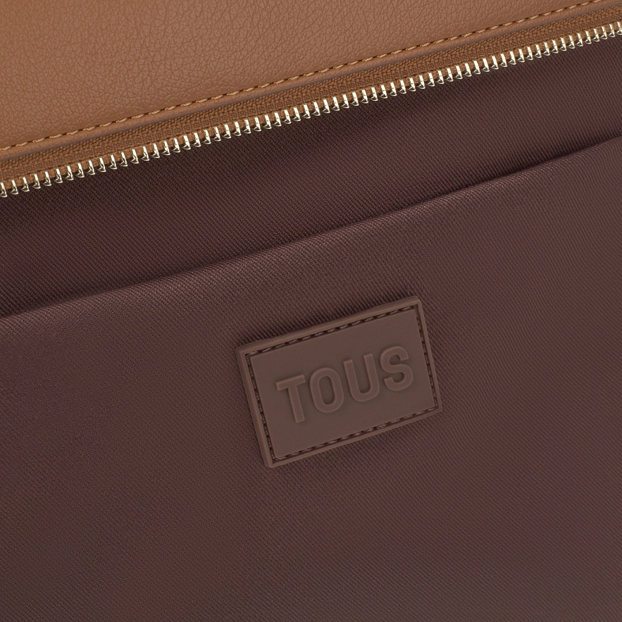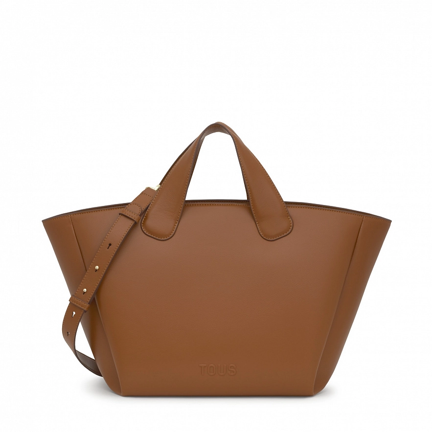 Сумка TOUS Bloom из полиуретана, большая, цвета кэмел. Застежка на молнии. Фиксированные ручки и фиксированный плечевой ремень. Открытый внутренний карман открытый. Размеры (высота х ширина х глубина): 27 x 51 x 19 см.