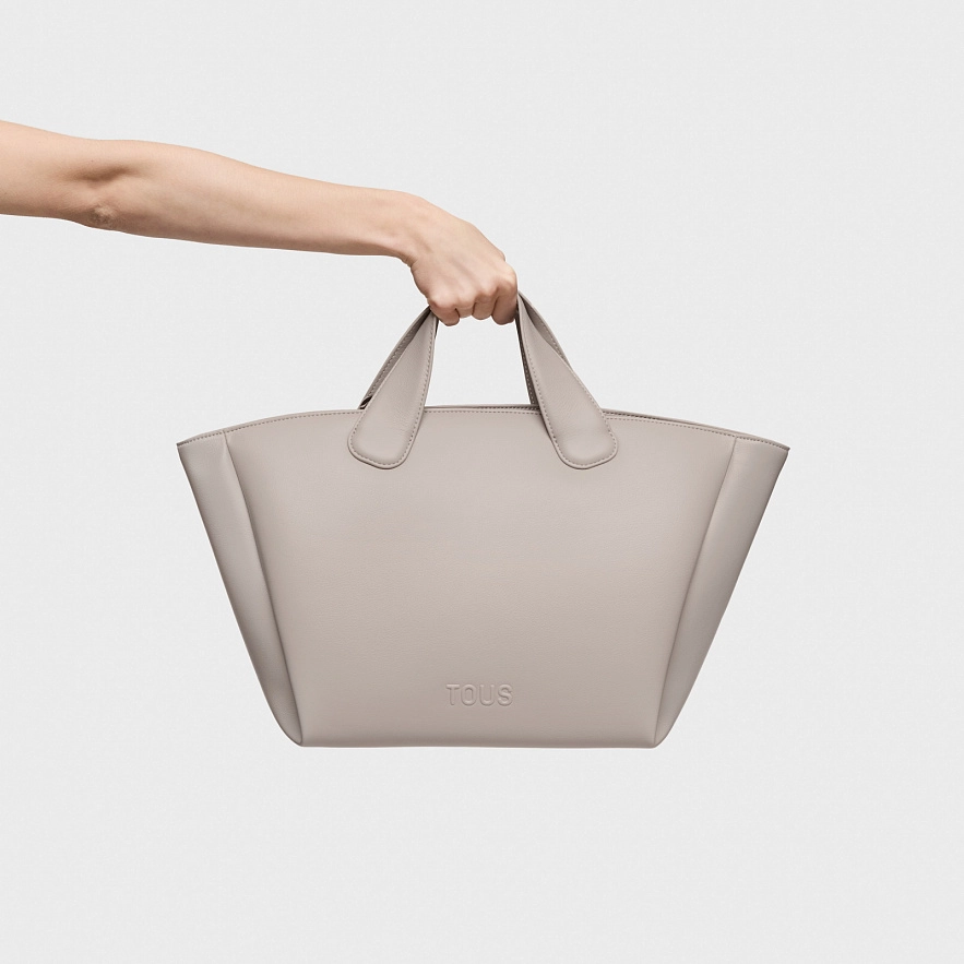 Сумка TOUS Bloom из полиуретана, большая, серого цвета. Застежка на молнии. Фиксированные ручки и фиксированный плечевой ремень. Открытый внутренний карман открытый. Размеры (высота х ширина х глубина): 27 x 51 x 19 см.