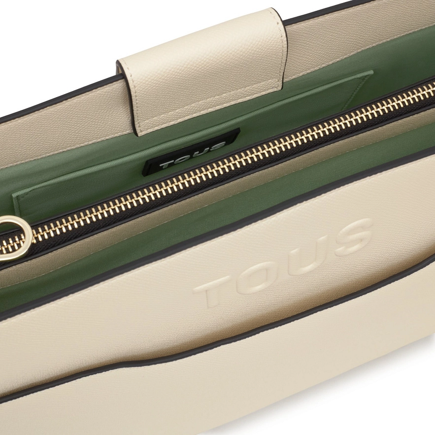 Сумка TOUS Audree Saffiano из полиуретана бежевого цвета. Магнитная застежка. Два отделения, разделенные одним на молнии. Внутренний карман и внешний карман открываются. Два съемных плечевых ремня. Размеры (высота х ширина х глубина): 25 х 33,5 х 12,5 см.