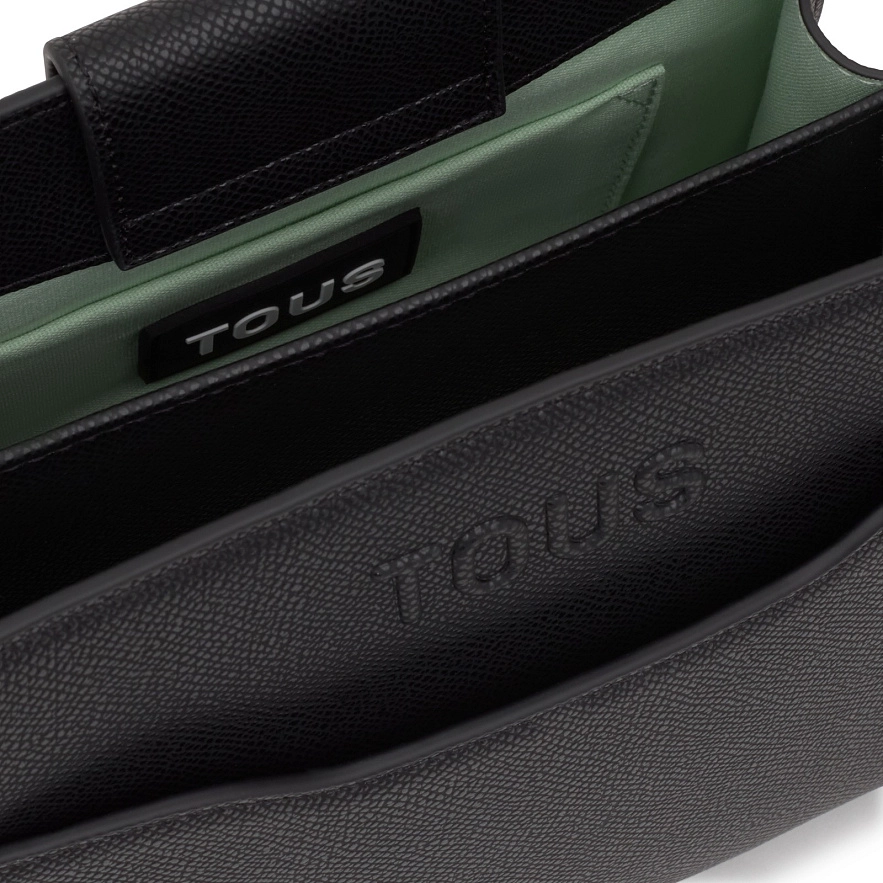 Сумка TOUS Audree Saffiano из полиуретана черного цвета. Магнитная застежка. Два отдельных отделения. Внутренний карман и внешний карман открываются. Два съемных плечевых ремня. Размеры (высота х ширина х глубина): 17 х 20 х 11,8 см.