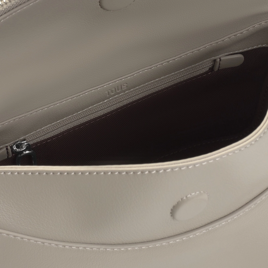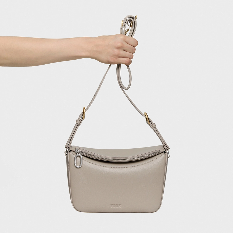 Сумка TOUS City через плечо из полиуретана серого цвета. Магнитная застежка. Один внешний карман на молнии и один внутренний карман на молнии. Регулируемый ремень через плечо. Размеры (высота x ширина x глубина): 16 x 26 x 12 см.