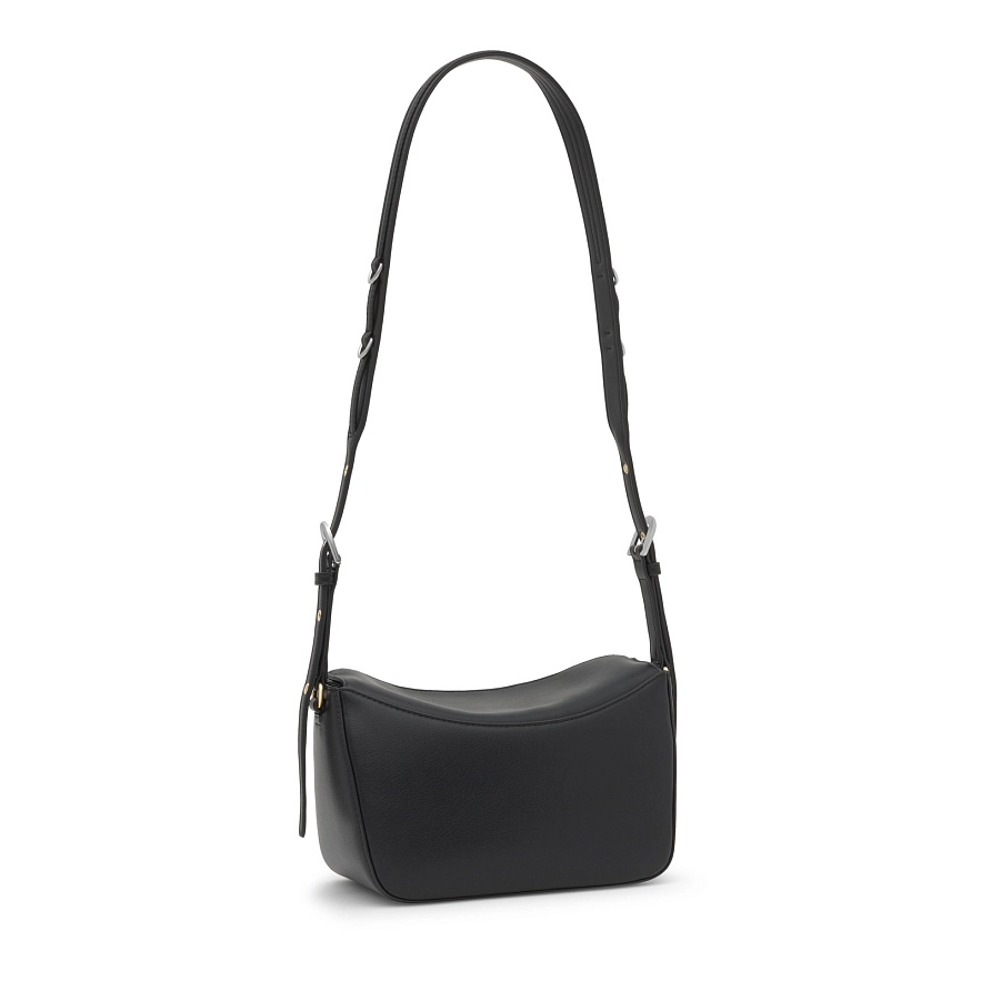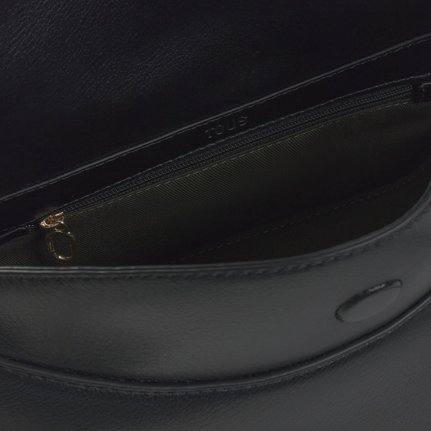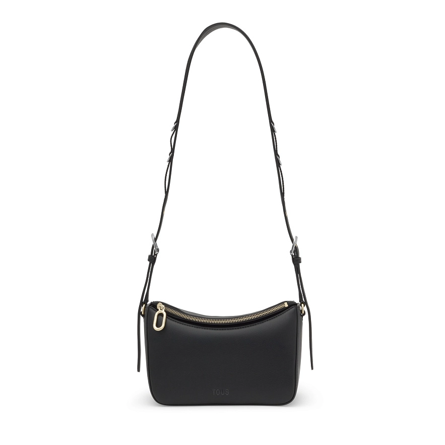 Сумка TOUS City через плечо из черного полиуретана. Магнитная застежка. Один внешний карман на молнии и один внутренний карман на молнии. Регулируемый ремень через плечо. Размеры (высота x ширина x глубина): 16 x 26 x 12 см.