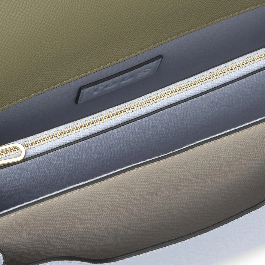 Сумка TOUS Audree Saffiano среднего размера, из полиуретана серо-коричневого и зеленого цвета. Клапан с магнитной застежкой. Открытый внешний карман. Имеет два отделения, разделенных еще одним карманом на молнии. Съемный плечевой ремень и регулируемый съемный ремень для ношения через плечо. Размеры (высота x ширина x глубина): 17 x 25 x 12 см.