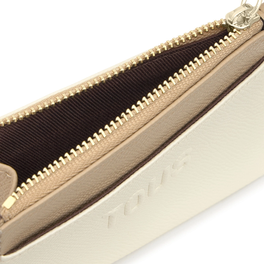 Кошелек TOUS Audree Saffiano из полиуретана бежевого и песочного цвета. Специальное отделение для монет с застежкой-молнией. Сзади имеет три слота для карт, один из которых прозрачный. Размеры (высота x ширина x глубина): 8 x 11,5 x 2 см.