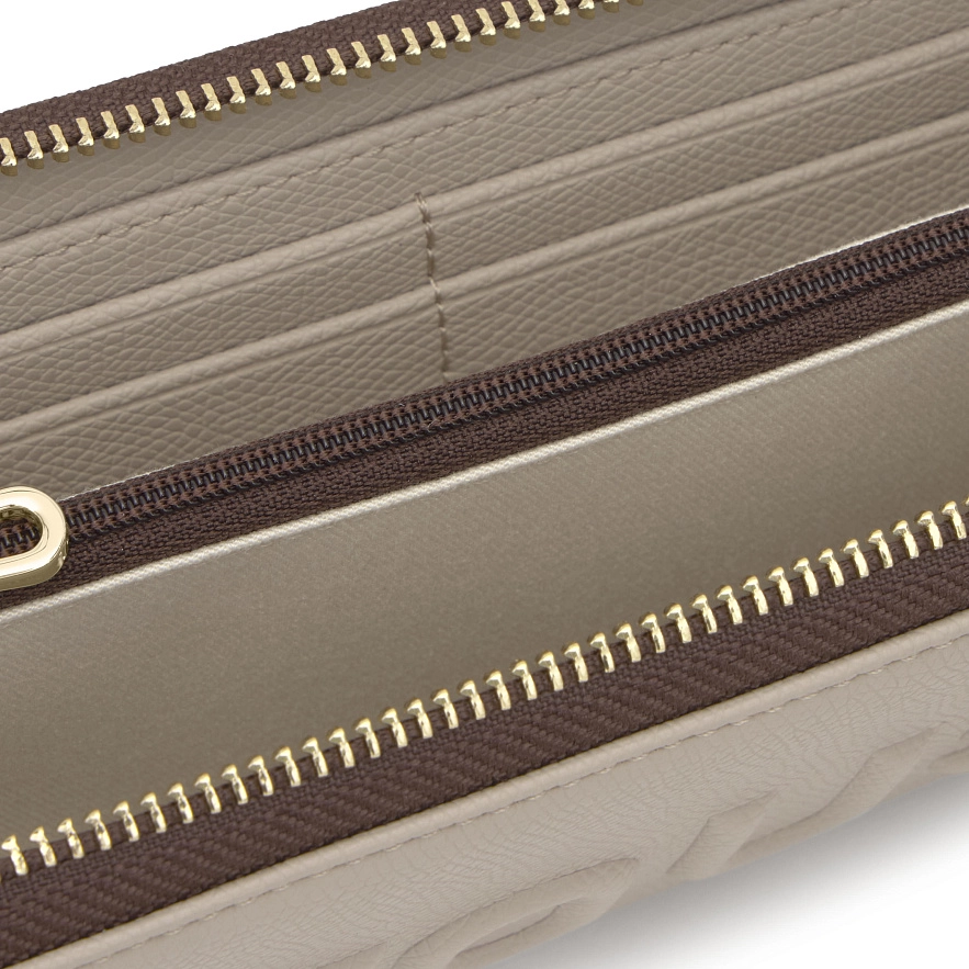 Кошелек TOUS Back To Basics из полиуретана серого цвета. Застежка-молния. Внутри есть два открытых отделения для купюр, отделение на молнии для монет и восемь слотов для карт. Размеры (высота x ширина x глубина): 10 x 19,5 x 3 см.