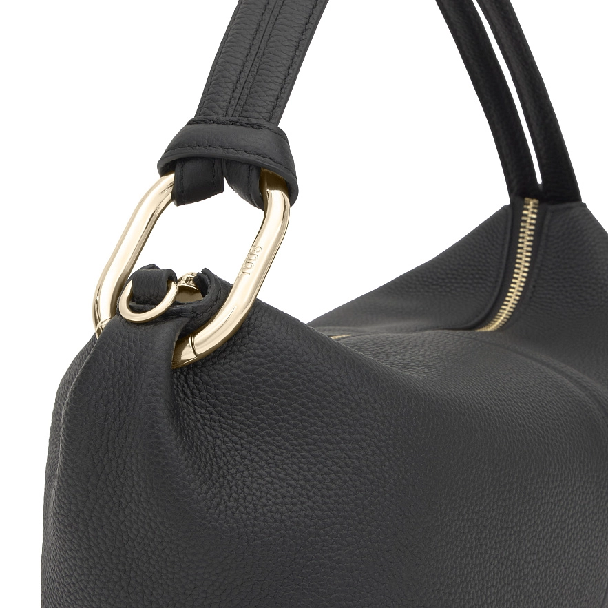 Сумка TOUS Hold из кожи с сертификатом LWG черного цвета. Застежка-молния. Внутренний карман на молнии. Фиксированный ремень через плечо и регулируемый ремень через плечо. Размеры (высота x ширина x глубина): 18 x 33 x 11 см.