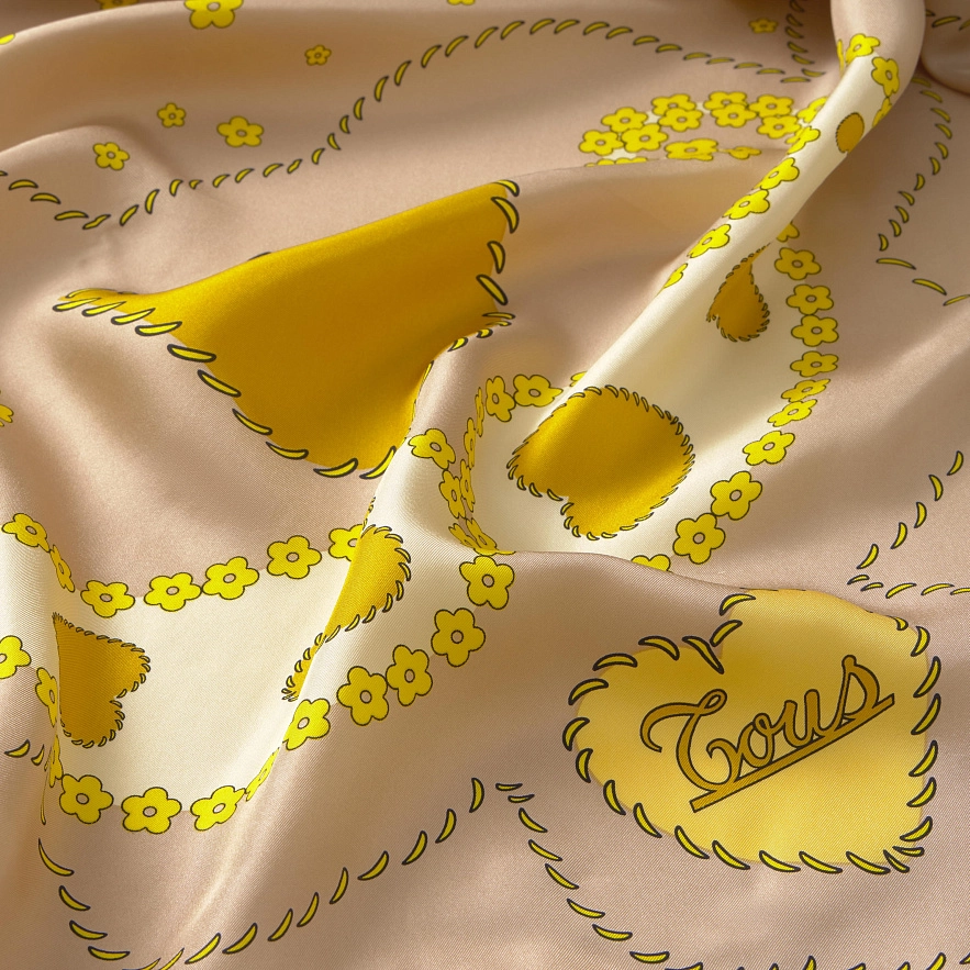 Платок TOUS Motifs Paisley квадратный, песочного цвета. Размеры: 120 x 120 см. Состав: 55% шелк, 45% хлопок.