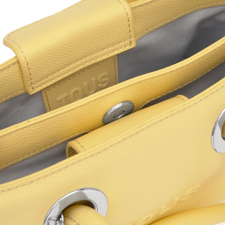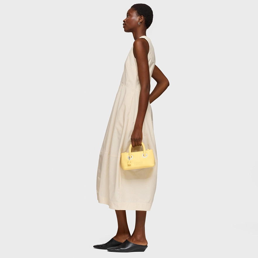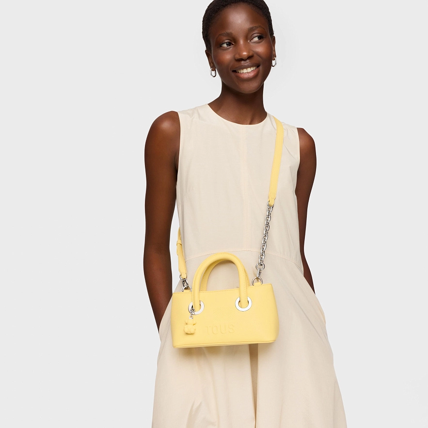 Сумка TOUS Poppy из полиуретана желтого цвета. Имеет два отделения на молнии. Открытый внутренний карман. Фиксированные ручки и регулируемый и съемный ремень через плечо. Размеры (высота x ширина x глубина): 11,5 x 21 x 10 см.