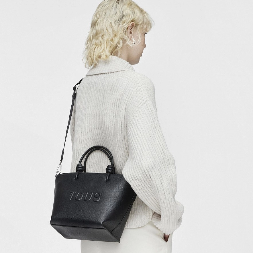 Сумка TOUS La Rue New Tote из искусственной кожи черного цвета. Застежка-молния. Имеет один открытый карман внутри. Фиксированная ручка и регулируемый и съемный ремень через плечо. Размеры (высота х ширина х глубина): 21 х 31 х 15,5 см.