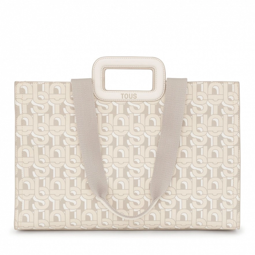 Сумка TOUS Manifesto Amaya большого размера из искусственной кожи с бежевым принтом. Застежка-молния и открытый карман внутри. Фиксированные ручки и плечевые ремни. Размеры (высота х ширина х глубина): 28 х 42 х 15 см.