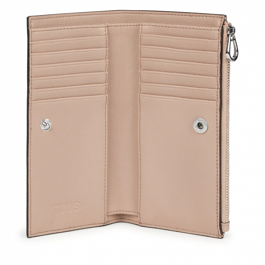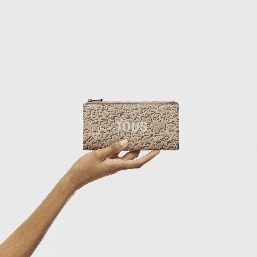 Кошелек TOUS Kaos Mini Evolution с пудровым принтом Kaos. Застежка на кнопку. Имеет отделение для монет, закрывающееся на молнию. Внутри двенадцать слотов для карт, открытое отделение для банкнот и два открытых других отделения. Размеры (высота х ширина х глубина): 9,5 х 18 х 2 см.