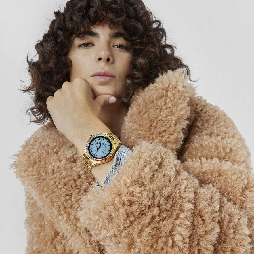 Безель с радужными фианитами в рельсовой оправе. Совместимость: Android 7.0 и iOS 12.0 или выше. Сенсорный экран размером 1,09 дюйма (Full Touch). Операционная система: РТ ОС. Возможности подключения: Версия Bluetooth: BT 5.0. Оперативная память: SRAM M4, 128 Мб Flash ROM. Аккумулятор: 180 мАч, 3,7 В, перезаряжаемый литиевый с магнитным кабелем, 5 дней работы и 10 дней в режиме ожидания. Чипсет/процессор: Realtek RTL8762C-VD — ARM Cortex-M0 — частота 53 МГц. IP68 водонепроницаемый. Функции: 12 циферблатов TOUS со сменным циферблатом из приложения TOUS WEAR, часы, минуты, секунды, месяц, день, день недели, ежедневная активность со счетчиком шагов, счетчик калорий, пройденное расстояние в милях или километрах, спорт (ходьба, бег, скалолазание, езда на велосипеде, беговая дорожка, йога, фитнес, теннис и скакалка), будильник с вибрацией, частота сердечных сокращений, мониторинг сна, информация о погоде, секундомер 1/100 секунды, 3 игры и уведомления ( звонки, WhatsApp, электронная почта, SMS, Facebook и т. д.)