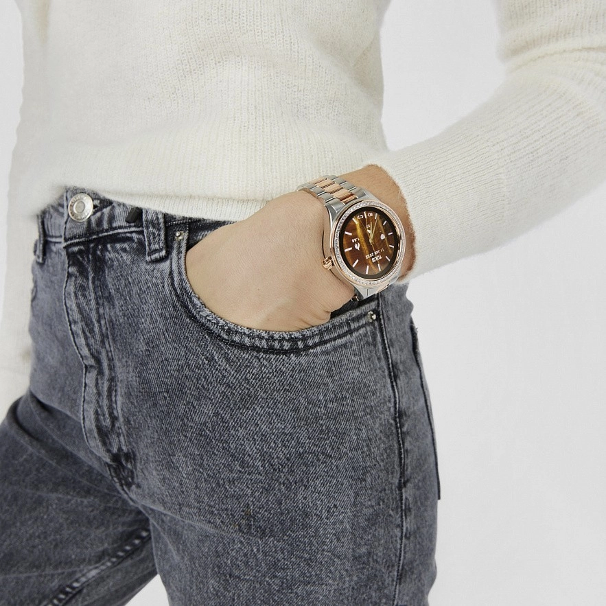 Безель с белыми фианитами. Совместимость: Android 7.0 и iOS 12.0 или выше. 1,09-дюймовый сенсорный экран (Full Touch). Операционная система: РТ ОС. Возможности подключения: Bluetooth версии BT 5.0. Оперативная память: SRAM M4, 128 Мб Flash ROM Батарея: 180 мАч, 3,7 В литиевая перезаряжаемая с магнитным кабелем, 5 дней работы и 10 дней в состоянии покоя. Чипсет/процессор: Realtek RTL8762C-VD — ARM Cortex-M0 — частота 53 МГц. Водонепроницаемый: IP68. Функции: 12 сфер TOUS и одна сфера могут быть взаимозаменяемы в приложении TOUS WEAR, часы, минуты, секунды, месяц, день, день недели, ежедневная активность со счетчиком шагов, счетчик калорий, пройденное расстояние в милях или километрах, спорт ( ходьба, бег, скалолазание, езда на велосипеде, беговая дорожка, эллиптический тренажер, гребной тренажер, хайит, йога, фитнес, теннис и скакалка), Вибробудильник, пульс, мониторинг сна, погода, хронограф 1/100 секунды, 3 игры и уведомления (звонки, WhatsApp, электронная почта, SMS, Facebook и т. д.), управление музыкой.