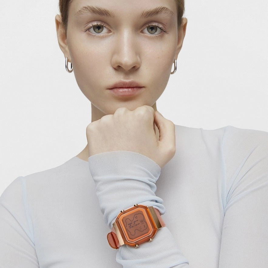 Цифровые часы TOUS D-BEAR с корпусом и ремешком из поликарбоната лососевого цвета в сочетании с деталями из стали IPRG розового цвета. Циферблат: металл/жидкокристаллический экран (LCD) с подсветкой. Диаметр корпуса: 36,5мм х 46,2мм. Функции: часы в 12 или 24-часовом формате, минуты, секунды, дата, месяц и день недели, часовой механизм, секундомер 1/100 секунды, таймер обратного отсчета и 5 будильников. Водонепроницаемый до 3 ATM. Батарейка: 3 В литиевая CR2025/2,5 г (литий 0,045 г). Калибр: CH1892. Кристалл: квадратный плоский. Обычная застежка со стальными петлями.