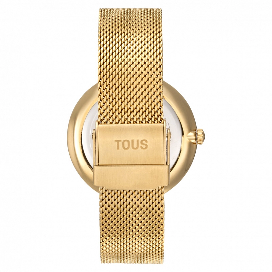 Часы TOUS S-Mesh Mirror со стальным браслетом и стальным корпусом золотого цвета. Диаметр корпуса: 36 мм. Циферблат: с зеленым зеркальным эффектом. Функции: часы, минуты и секунды. Механизм: аналоговый японский кварцевый. Водонепроницаемость: 5 ATM. Браслет: 65 мм x 18 мм x 16 мм / 105 мм x 18 мм x 16 мм. Миланская сетка с безопасной застежкой.