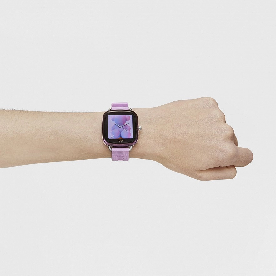 Смарт-часы TOUS D-Connect с розовым силиконовым ремешком. Размеры: 38,8 мм x 39,5 мм. Совместимость с ОС: Android 7.0 и iOS 12.0 или выше. Дисплей/ ЖК-дисплей: сенсорный экран 1,40 дюйма TFT-DLC цветной (Full Touch). Подключение: Bluetooth версии BLE5.0. Оперативная память: 128kb Аккумулятор: 180mAh, литий-ионный аккумулятор 3,8 В/2,9 г, перезаряжается с помощью магнитного кабеля, 5-7 дней в работе и 8-10в режиме ожидания. Чипсет: Realtek RTL8762CK и пульс: HRS 3300. Водонепроницаемость: IP68. Функции: 8 циферблатов TOUS + 4 сменные циферблаты из приложения TOUS WEAR, часы, минуты, месяц, день, день недели, ежедневная активность со счетчиком шагов, счетчик калорий и пройденного расстояния в милях или километрах, спорт (ходьба, бег, беговая дорожка) , верховая езда, тренажер, йога, фитнес, гребли, спиннинг, езда на велосипеде, теннис и прыжки), пульс, мониторинг сна, артериальное давление, уровень кислорода в крови, информация о погоде, секундомер на 1/10 секунды, управление музыкой, поиск телефона и управлени