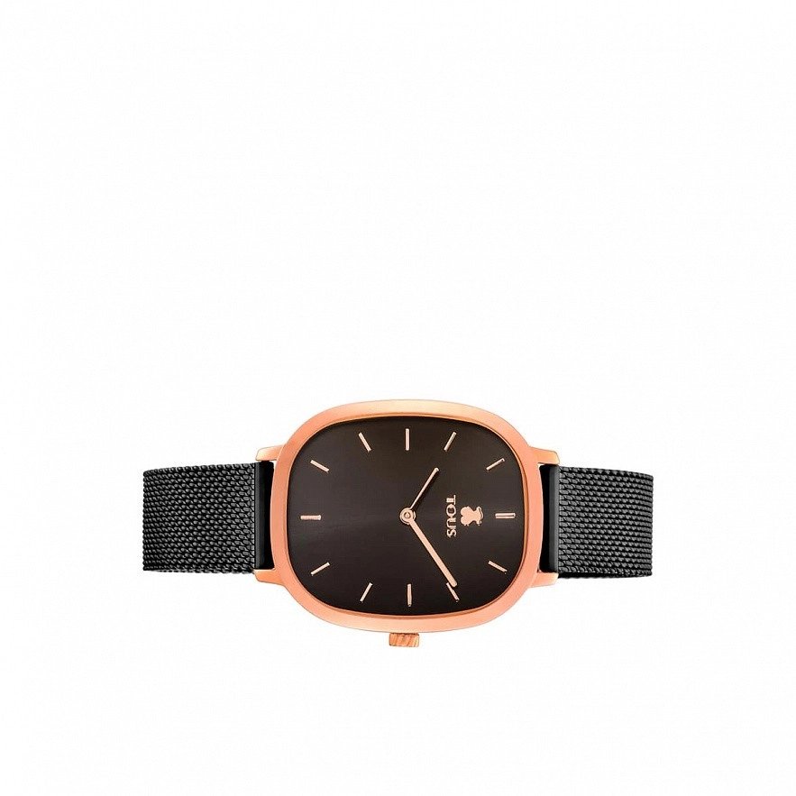 Часы TOUS HERITAGE. Ремешок и корпус из нержавеющей стали с IP-покрытием. Диаметр циферблата: 30х35мм. Водостойкость: до 3 АТМ. Индикация: часы и минуты. Аналоговый кварцевый механизм. Застежка, регулирующая длину ремешка.