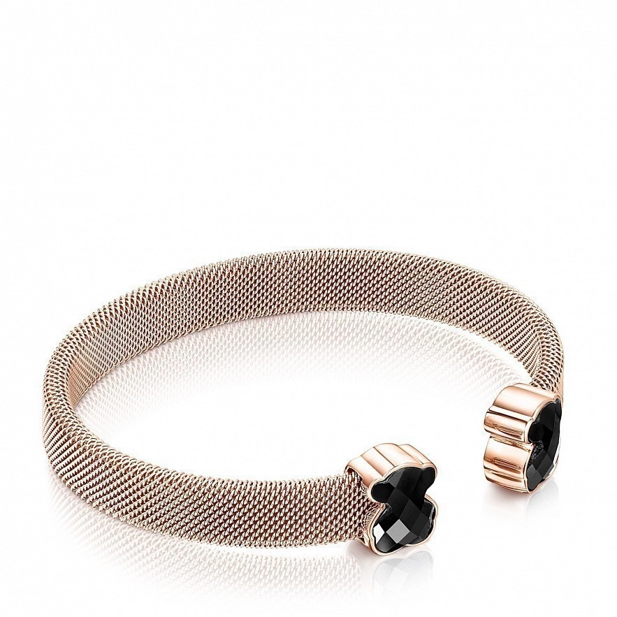 Браслет TOUS Mesh Color из стали с розовым IP-покрытием, с 2 вставками из оникса, в серебре 925 пробы с розовым покрытием Vermeil . Размер вставки: 1,1 см. Ширина браслета: 8 мм. Vermeil : серебро с покрытием розового золота 18kt.