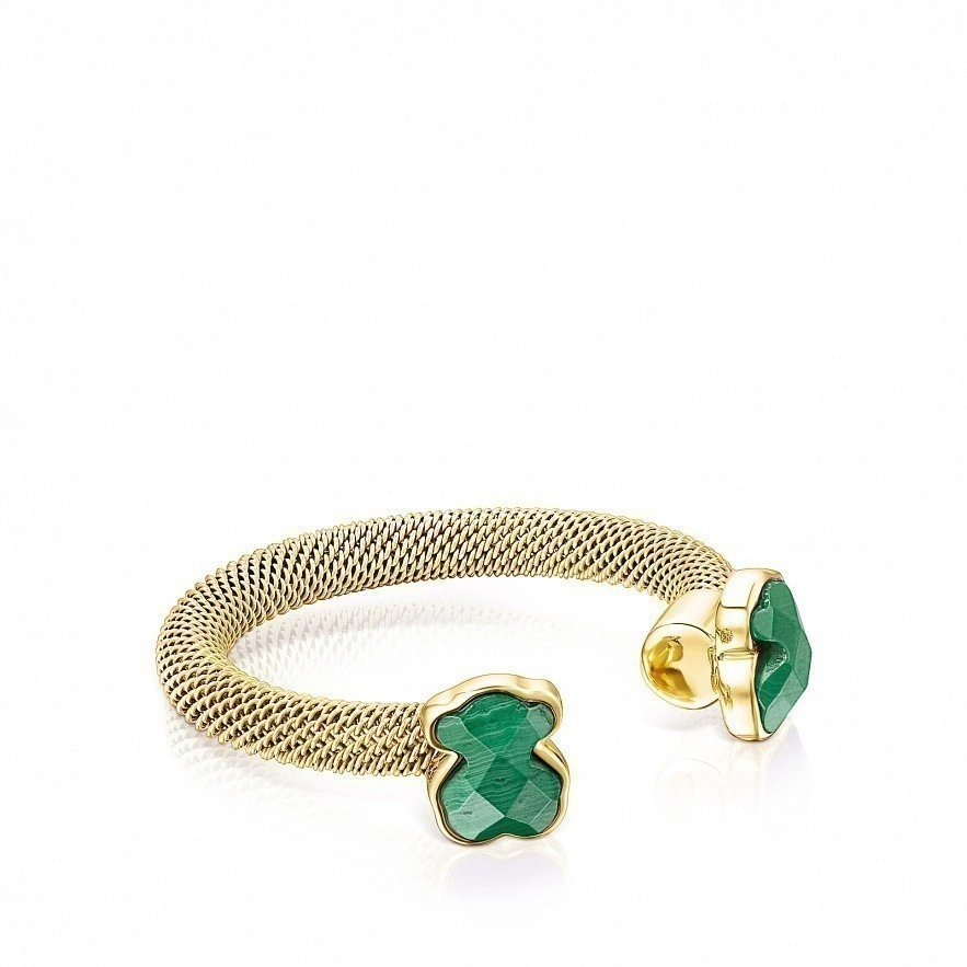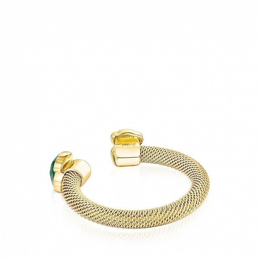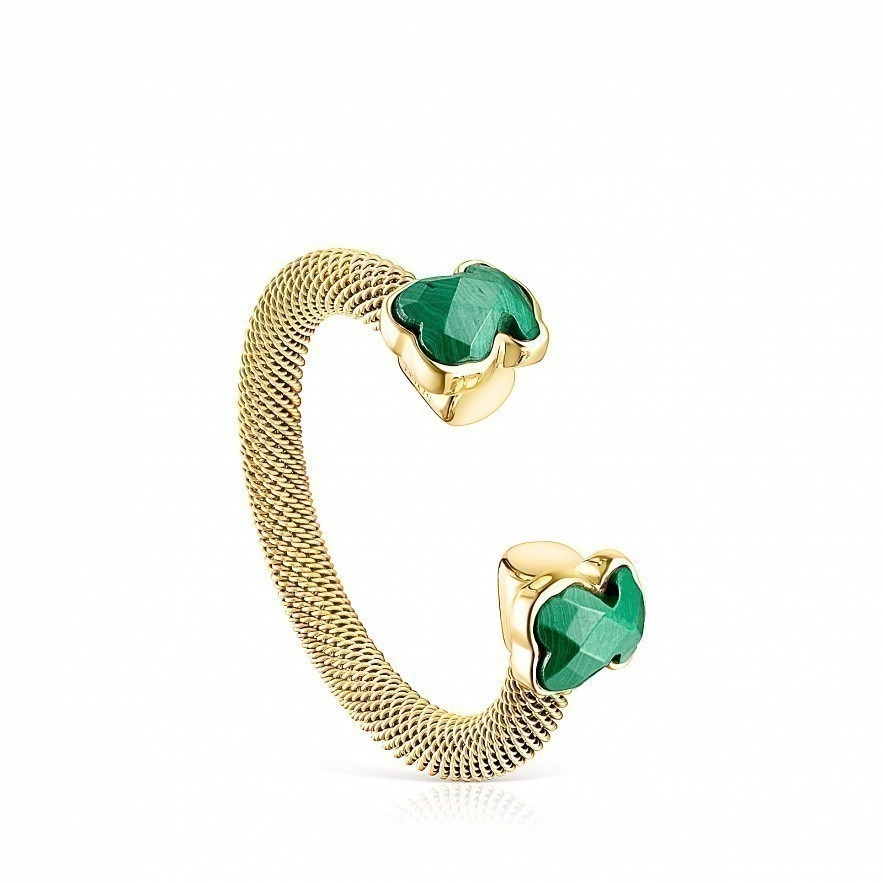 Открытое кольцо Mesh Color из серебра с золотистым ионным напылением и с малахитом