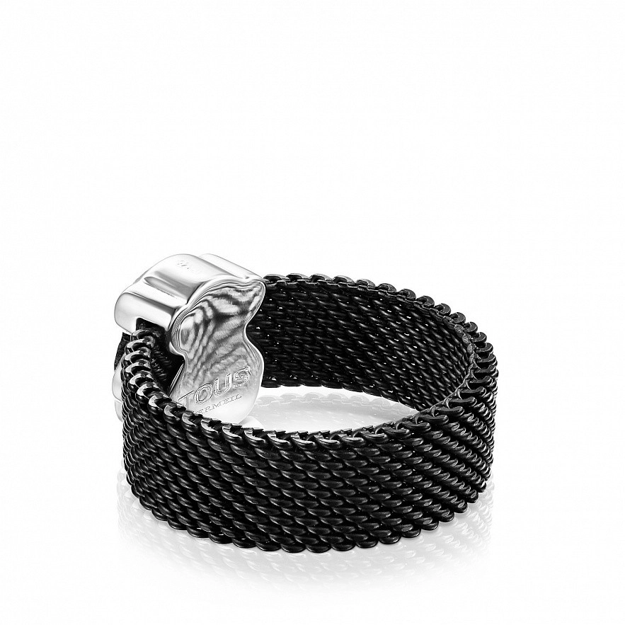 Кольцо TOUS Mesh Color из черной нержавеющей стали с мишкой из оникса и оправой из серебра 925 пробы. Размер мишки: 1,1 см. Ширина кольца: 8 мм. Техника изготовления: Микрофьюжн.