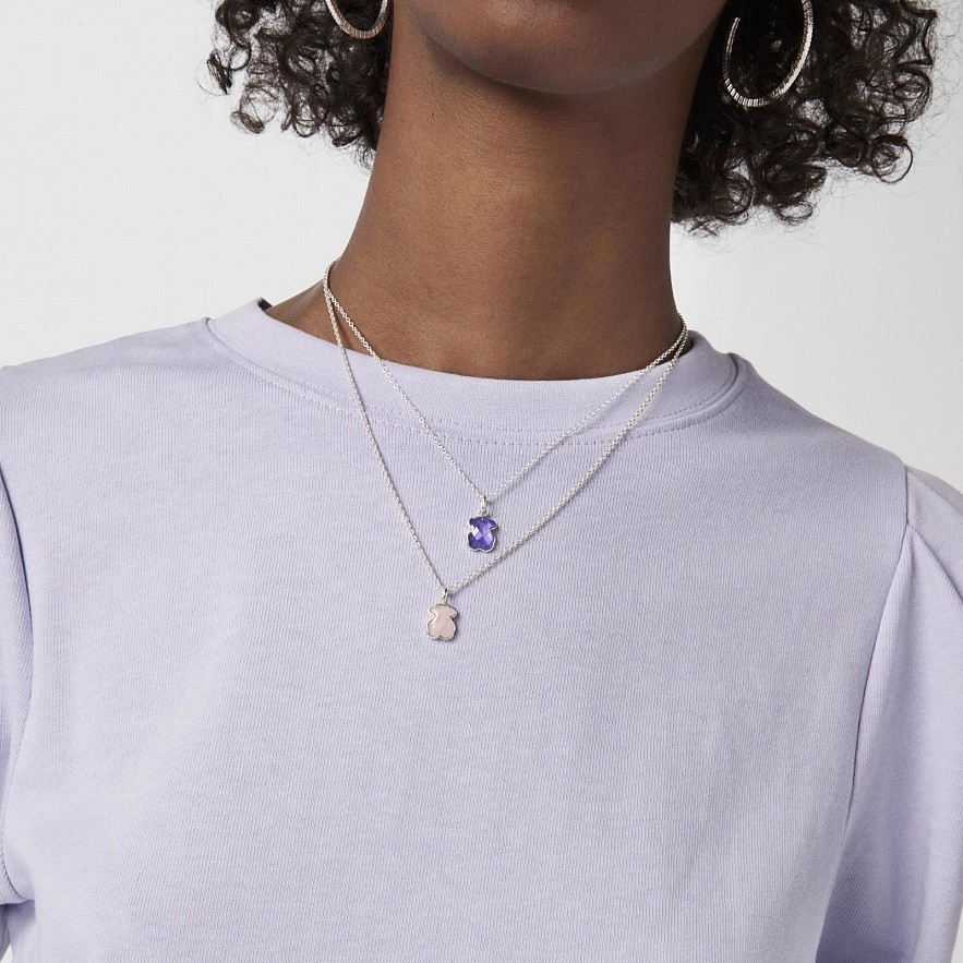 Серебряное колье Icon Color 925 пробы с аметистом.