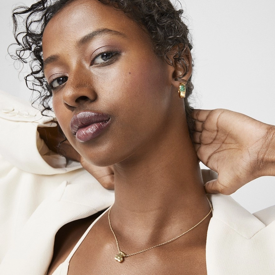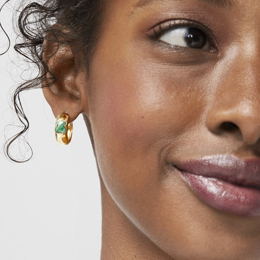 Маленькие серьги Icon Color в серебре 925 пробы из Vermeil с малахитом.Vermeil : серебро со слоем желтого золота 18 карат.