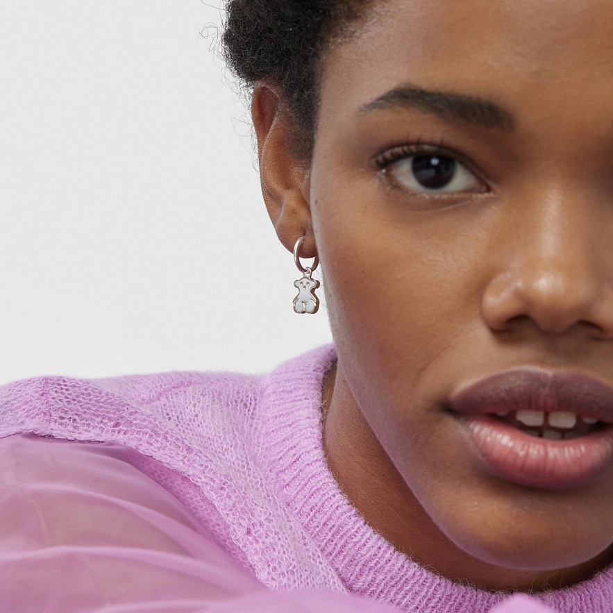 Серьги-кольца TOUS Sweet Dolls из стерлингового серебра. Размер серег: 1,15 см. Каталонская застежка. Техника изготовления: Литье.