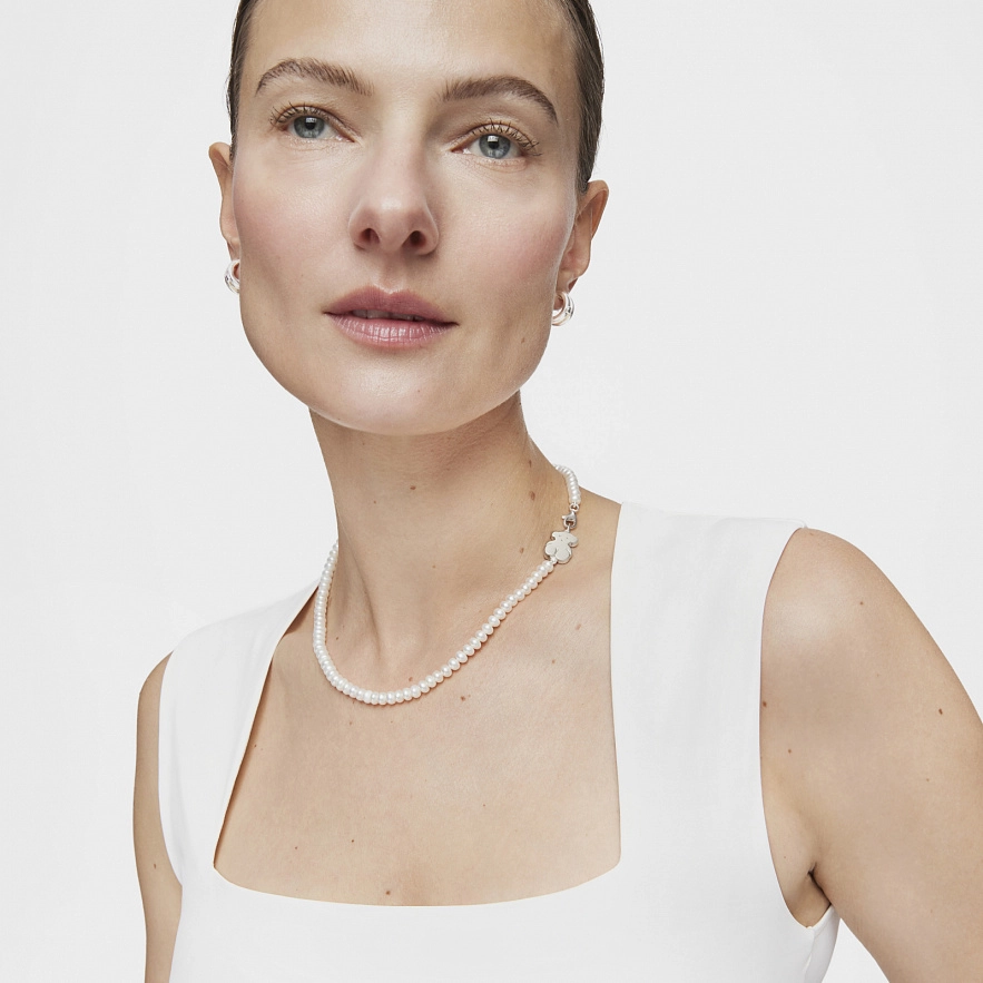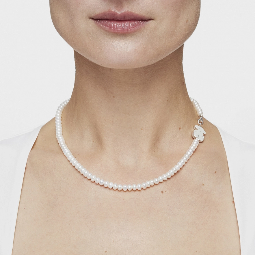 Колье TOUS Sweet Dolls из серебра 925 пробы и с культивированным пресноводным жемчугом и мишкой. Длина колье: 44,5 см. Техника изготовления: Гальванопластика без сердцевины.