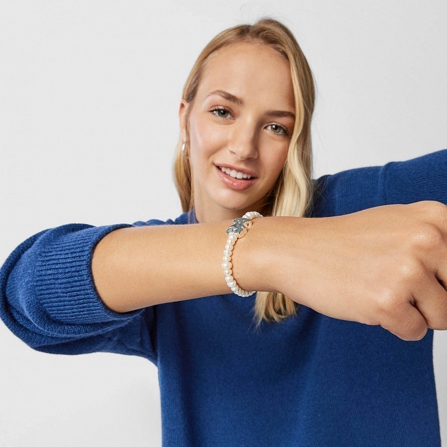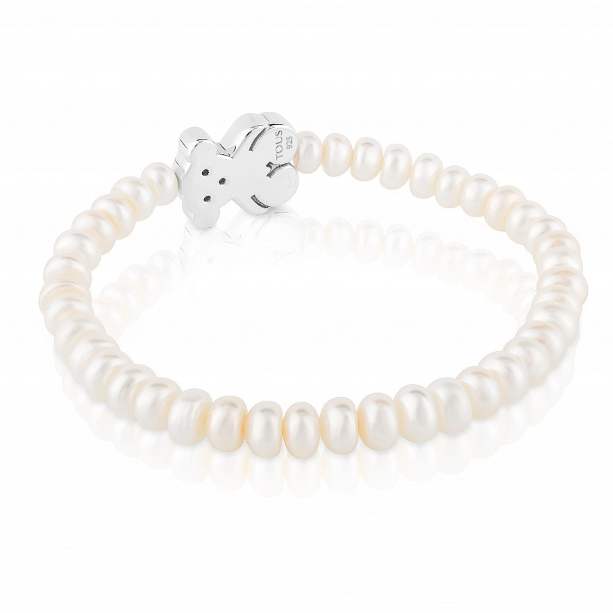 Эластичный браслет TOUS Sweet Dolls из серебра 925 пробы с мишкой и жемчужиной. Размер медведя: 1,5см.