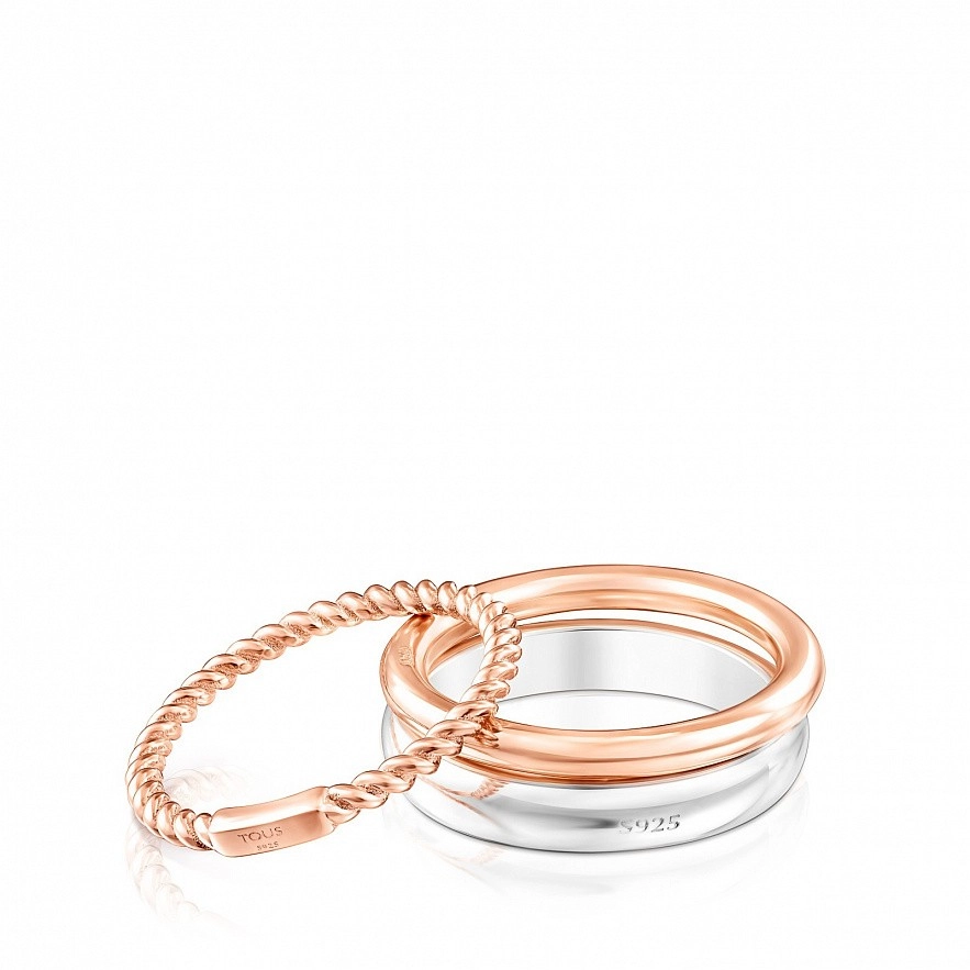 Сет колец Ring Mix из серебра 925 пробы и розового Vermeil с сапфиром.Vermeil : серебро со слоем желтого золота 18 карат.