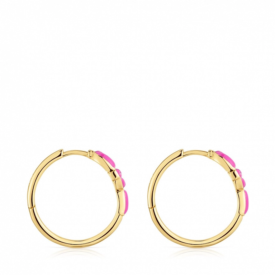 Серьги-кольца TOUS Manifesto из серебра 925 пробы с покрытием Vermeil и центральным шармом из эмали цвета фуксии. Диаметр сережек: 17,4 мм. Примечание: Эмаль нанесена вручную.