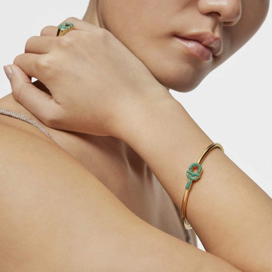 Браслет TOUS Manifesto из серебра 925 пробы с покрытием Vermeil и центральным мотивом с зеленой эмалью. Размер мотива: 19,5 мм. Длина браслета: 19 см. Примечание: Эмаль нанесена вручную.