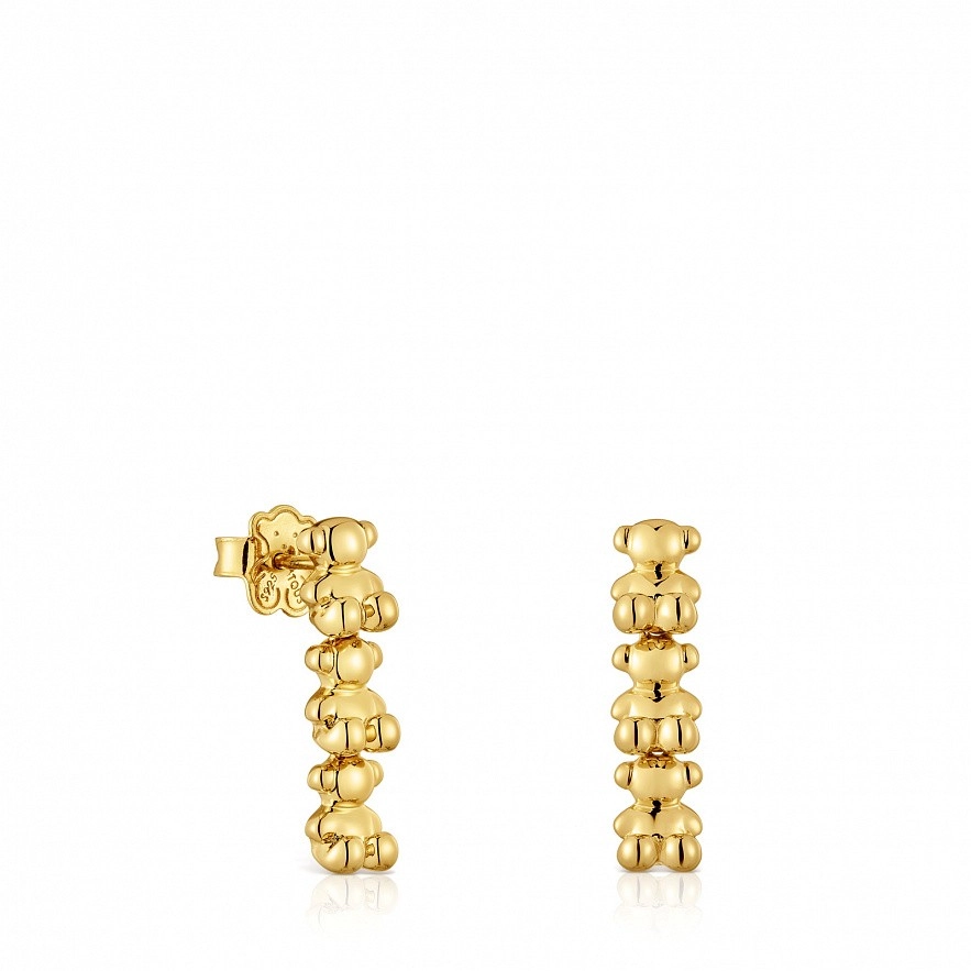 СерьгиTOUS Bold Bear длинные из серебра 925 пробы с золотым покрытием 18 карат с изображением медведя. Длина серьги: 22 мм. Размер мотива: 7,2мм. Застежка-пусет. Изготовлены из стерлингового серебра с золотым покрытием от 18 до 23 кт толщиной 3 микроны. Это качество гарантирует большую долговечность драгоценности.