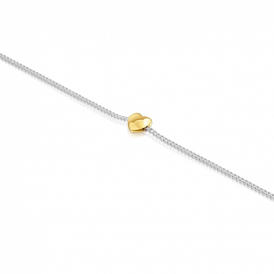 Браслет TOUS My Other Half из серебра 925 пробы с мотивом сердца из серебра 925 с покрытием Vermeil . Размер сердца 7 мм. Длина браслета: 17,5 см. Застежка в виде лобстера. Изделие из серебра 925 пробы с позолотой от 18 до 23 карат толщиной 3 микрона. Такое качество гарантирует большую долговечность украшения.