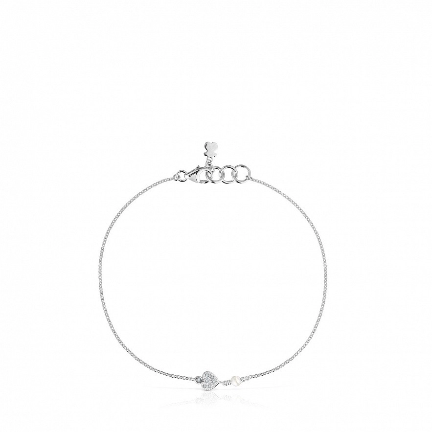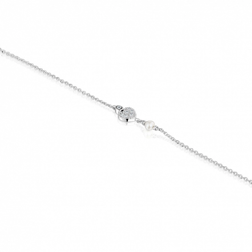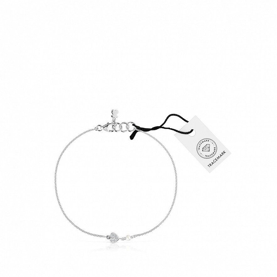 Браслет-цепочка TOUS Grain из белого золота 18 карат с бриллиантами 0,019 карата, сердечком и культивированным жемчугом. Размер культивированного жемчуга: 2-2,5 мм. Размер мотива: 4,4 мм. Качество бриллиантов: H/SI. Длина браслета: 17,5 см. Застежка-лобстер. Коллекция TOUS Grain гарантирует полную отслеживаемость золота и бриллиантов и имеет соответствующую документацию, подтверждающую это.