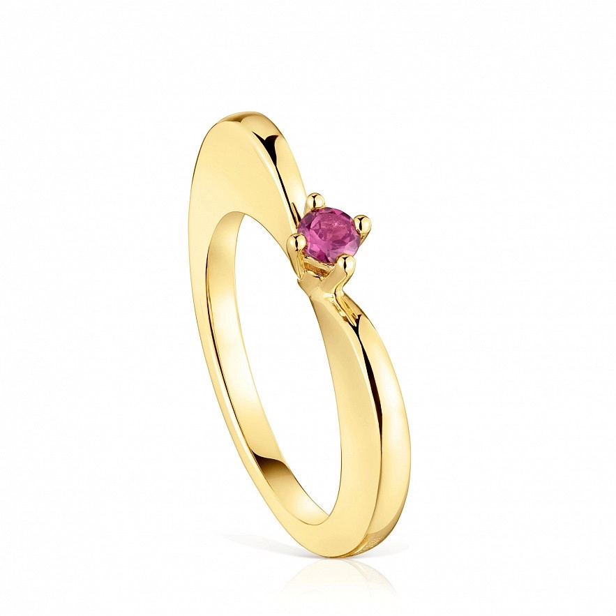 Кольцо TOUS My Other Half большое с сердцем, позолотой 18 карат, серебром и родолитом.