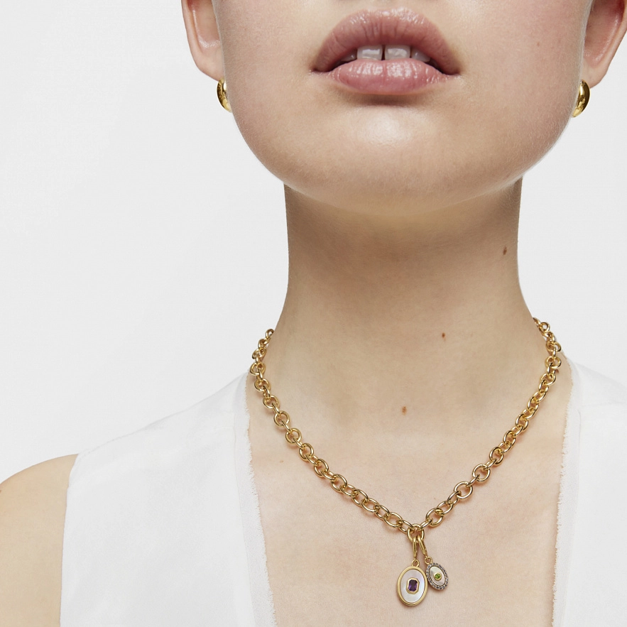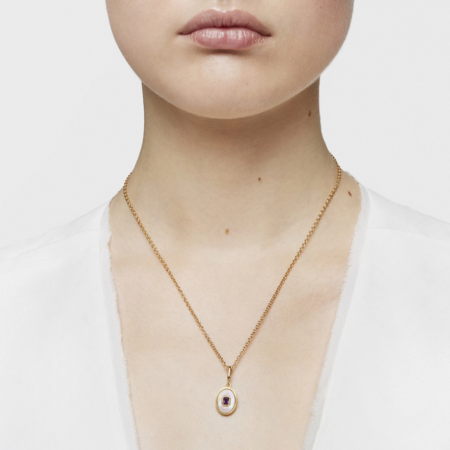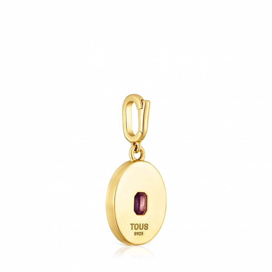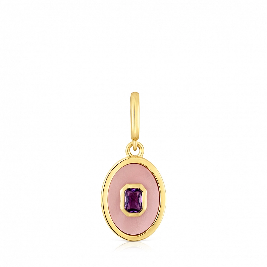 Кулон TOUS Medallions с покрытием из 18-каратного золота поверх серебра 925 проби. В центре розовый овальный перламутр 12,8 х 9,2 мм, в центре - восьмиугольный аметист 4,4 х 3,2 мм. Размер кулона: 15 мм. Это изделие не включает в себя цепочку.