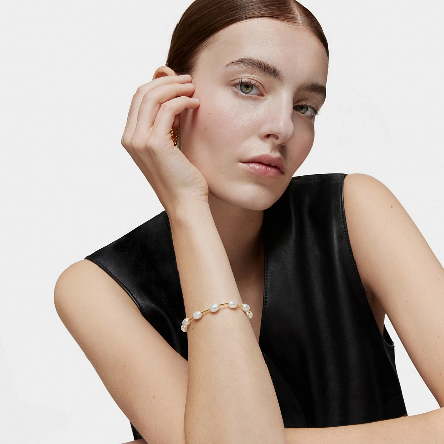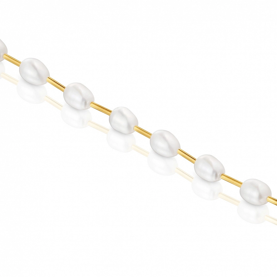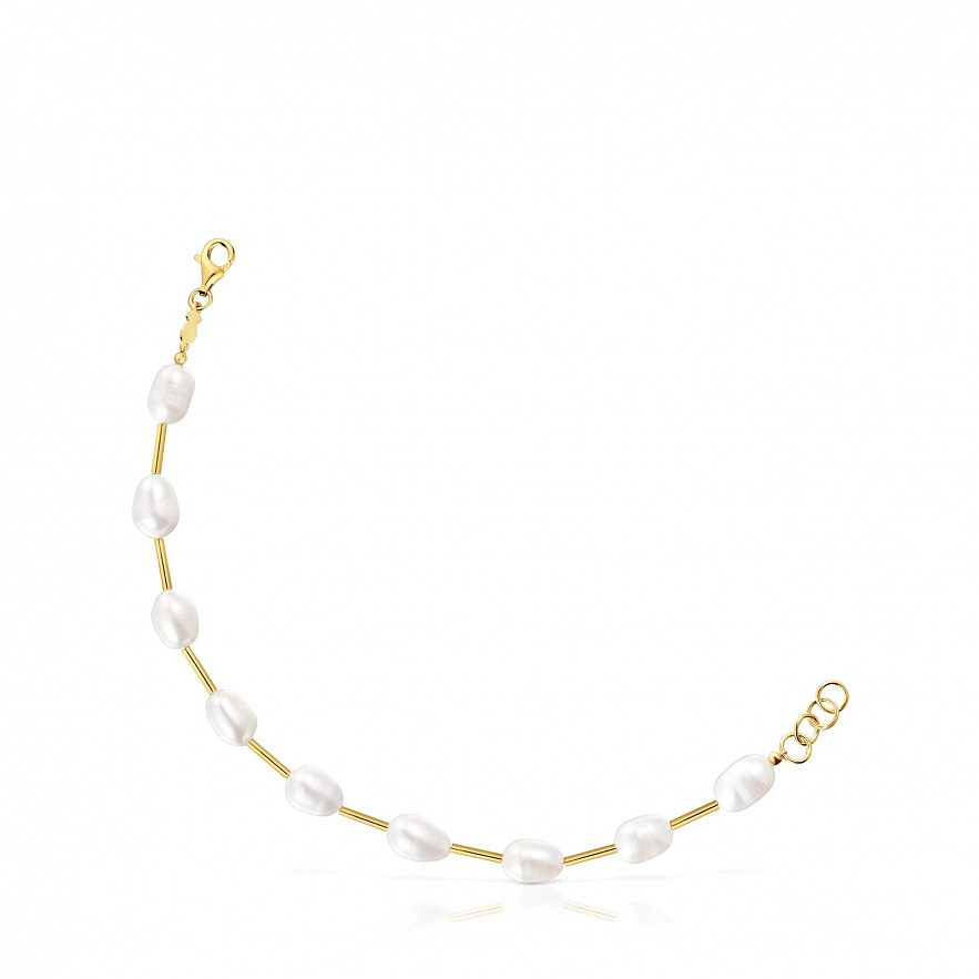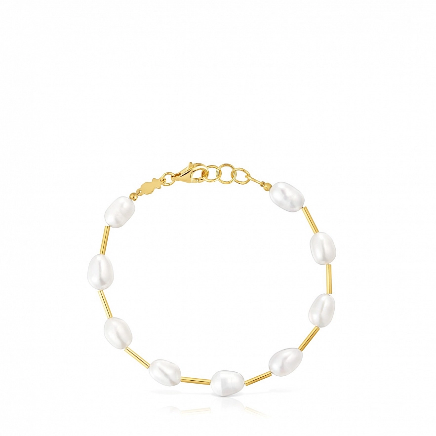 Браслет TOUS Gloss из серебра 925 пробы с покрытием Vermeil с пресноводным культивированным жемчугом. Размер культивированного жемчуга: 9,4 мм. Длина браслета: 19 см. Застежка лобстер.