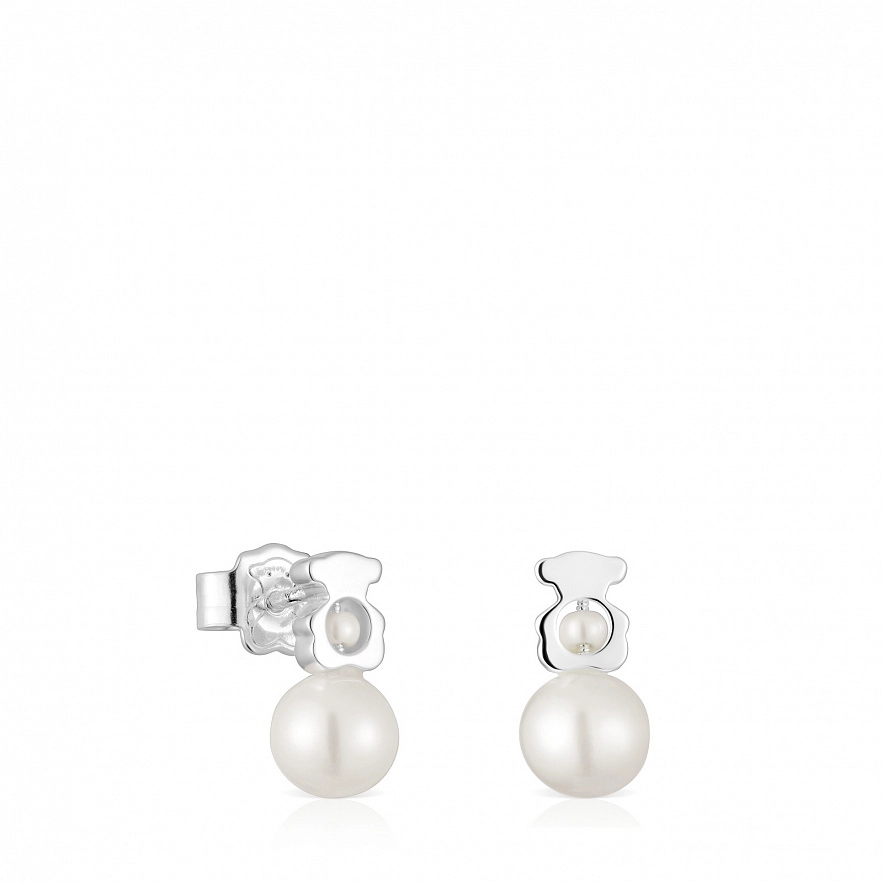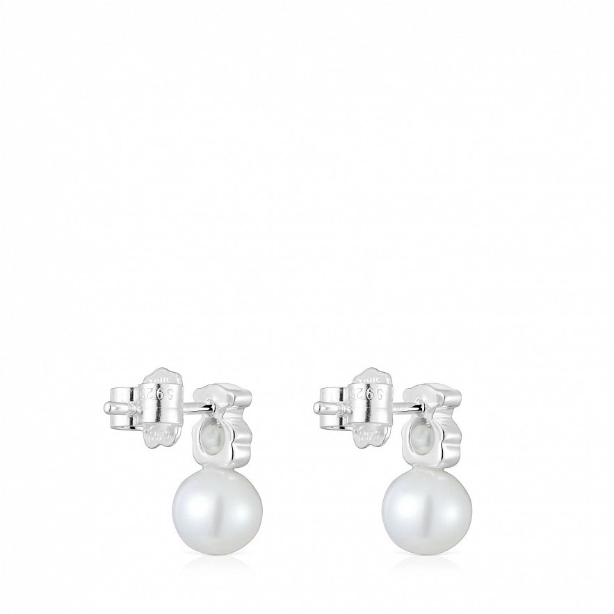 Серьги TOUS I-Bear из серебра 925 пробы с культивированным жемчугом. Размер культивированного жемчуга: 2-2,5 мм и 6-6,5 мм. Размер сережек: 10 мм.
