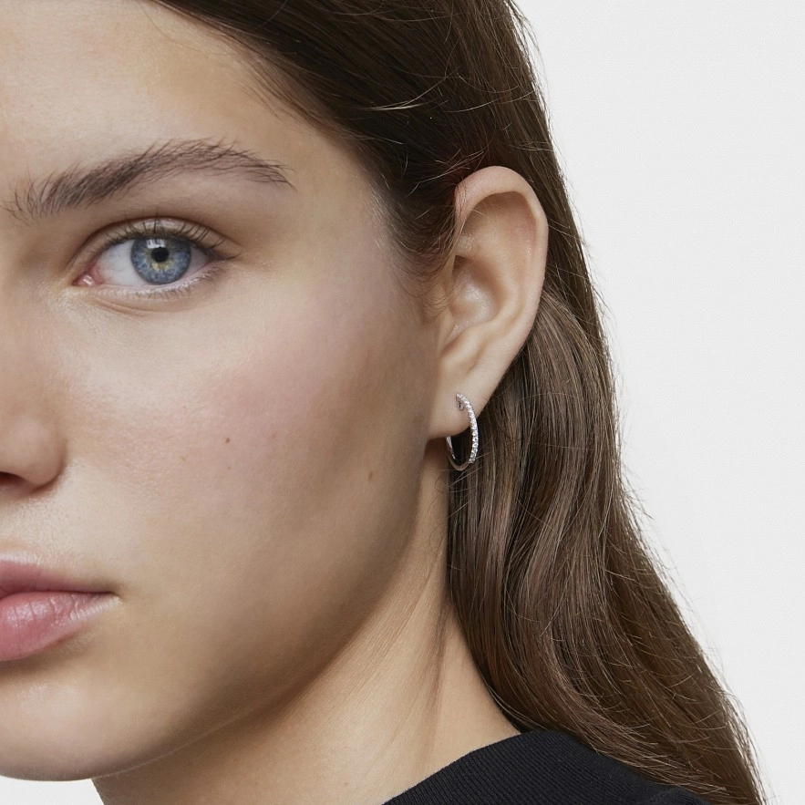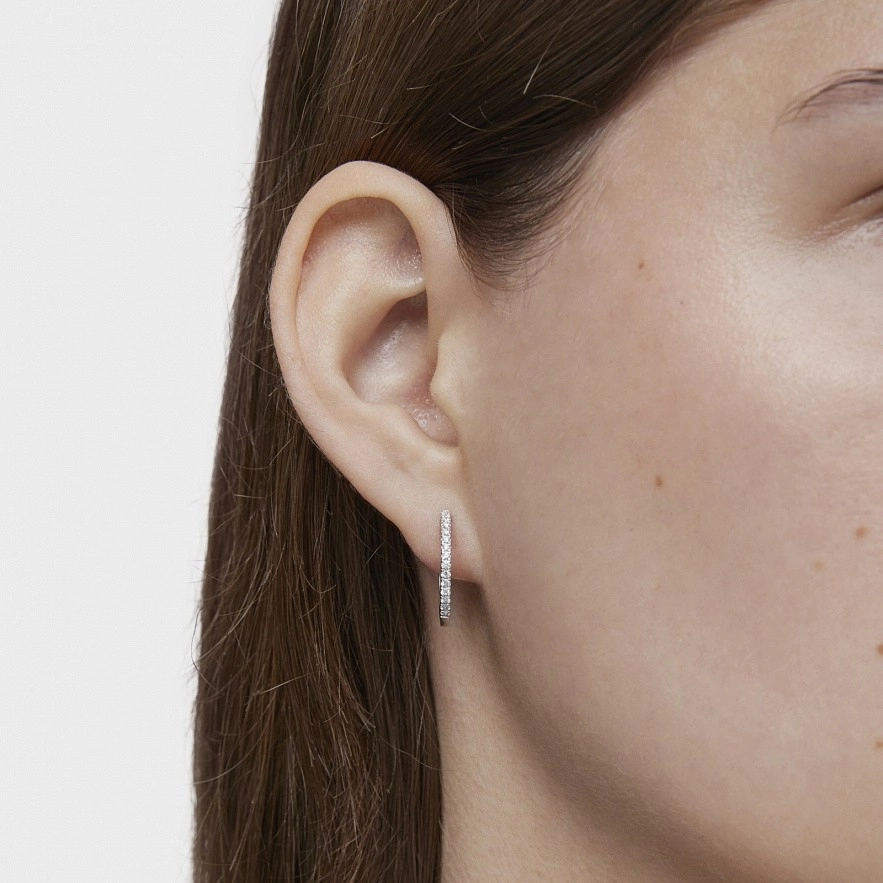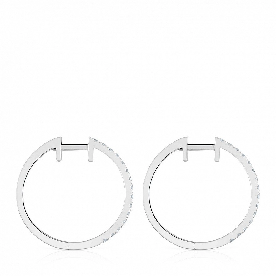 Серьги-кольца TOUS Les Classiques из 18-каратного белого золота с бриллиантами 0,16 карата. Качество бриллиантов: GH/SI. Размер сережек: 14,5мм.