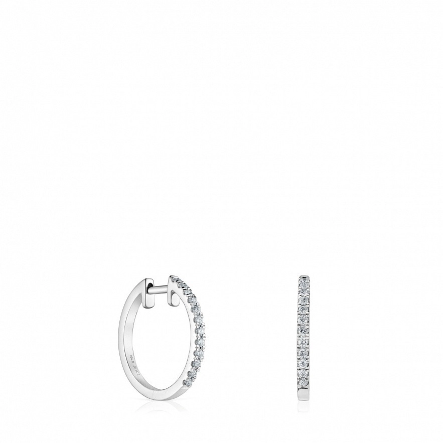 Серьги-кольца TOUS Les Classiques из белого золота 18 карат с бриллиантами классической огранки 0,16 карата. Качество бриллианта: GH/SI. Размер серьги: 12,5 мм.