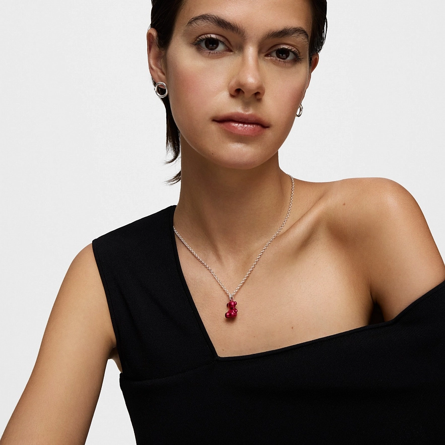 Кулон TOUS Bold Bear из стали с покрытием красной эмали и кольца из серебра 925 пробы. Размер мишки: 16 мм. Это изделие не включает в себя цепочку.
