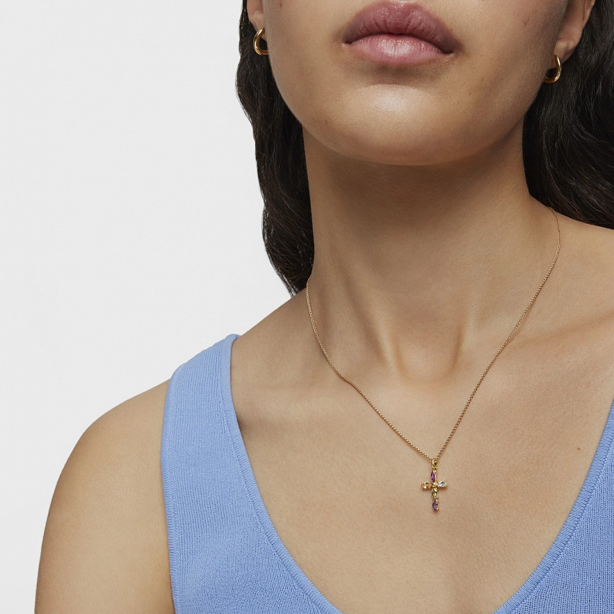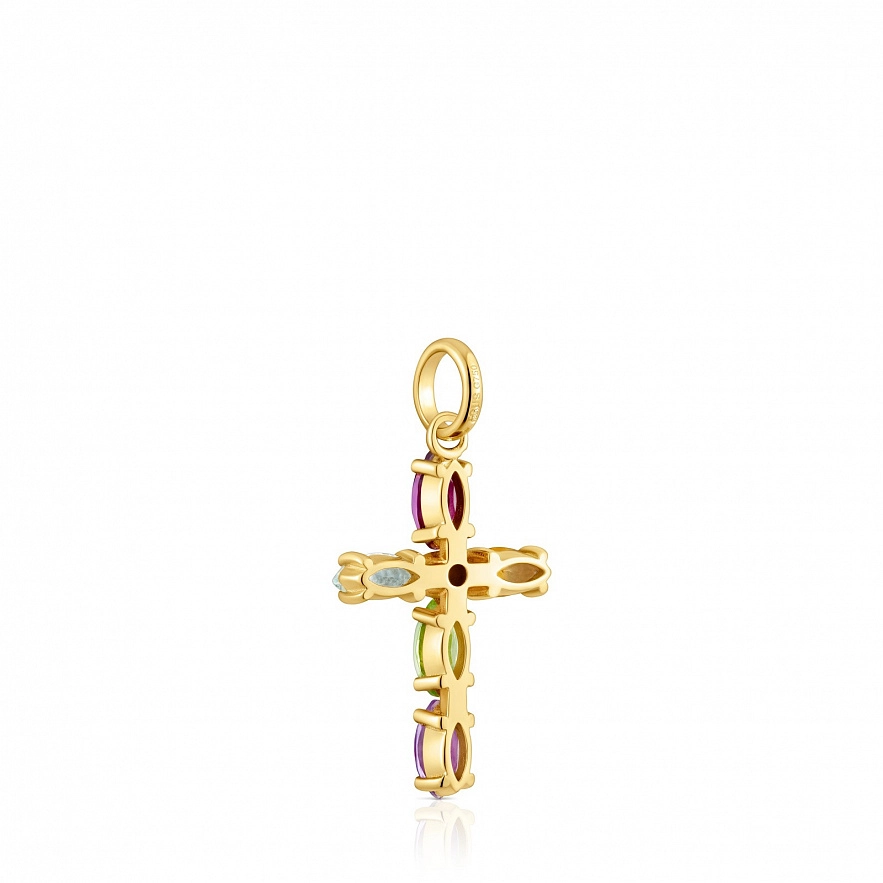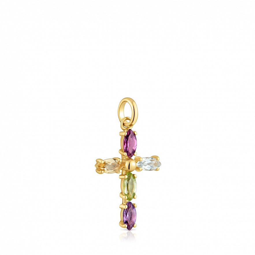 Кулон TOUS Basics из желтого золота 18 карат с драгоценными камнями огранки «маркиза» размером 4,5 мм х 2,5 мм. Камни: цитрин, перидот, аметист, голубой топаз и родолит. Размер кулона: 18 мм. Цепочка в комплект не входит.