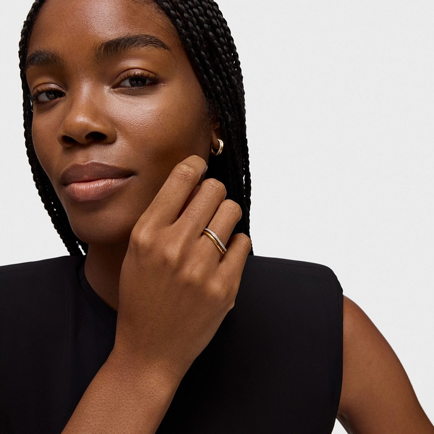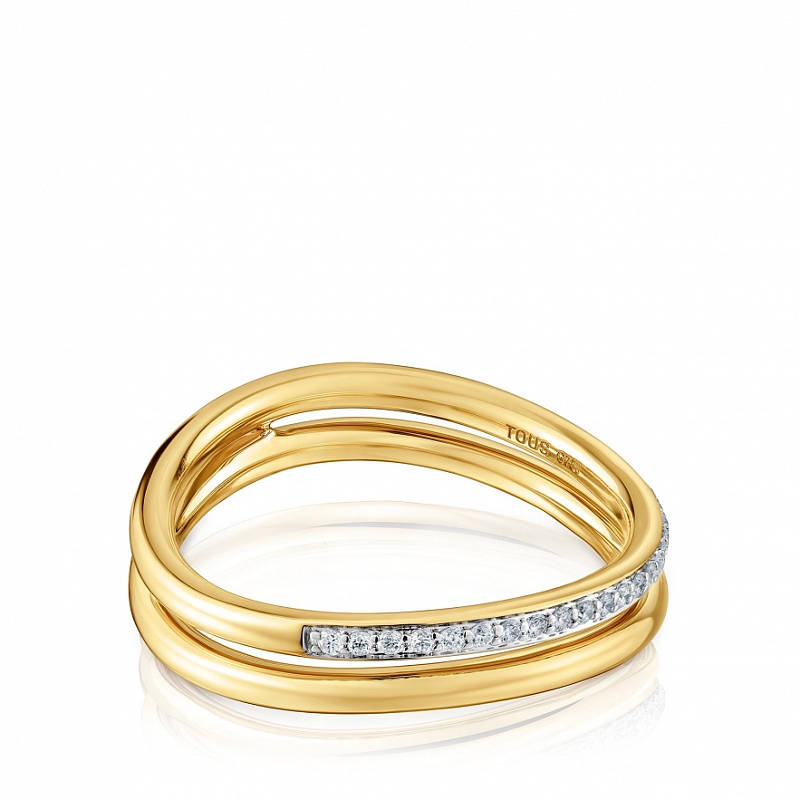 Двойное кольцо TOUS New Hav из 18-каратного желтого золота с бриллиантами 0,14 карата. Качество бриллиантов: H/SI. Ширина кольца: 6 мм.